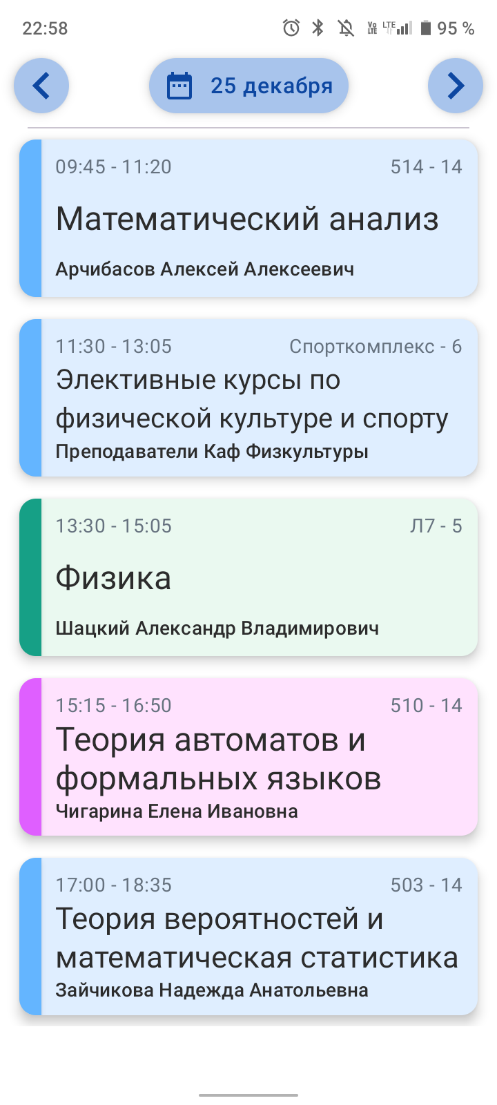 - Страница расписания по дням